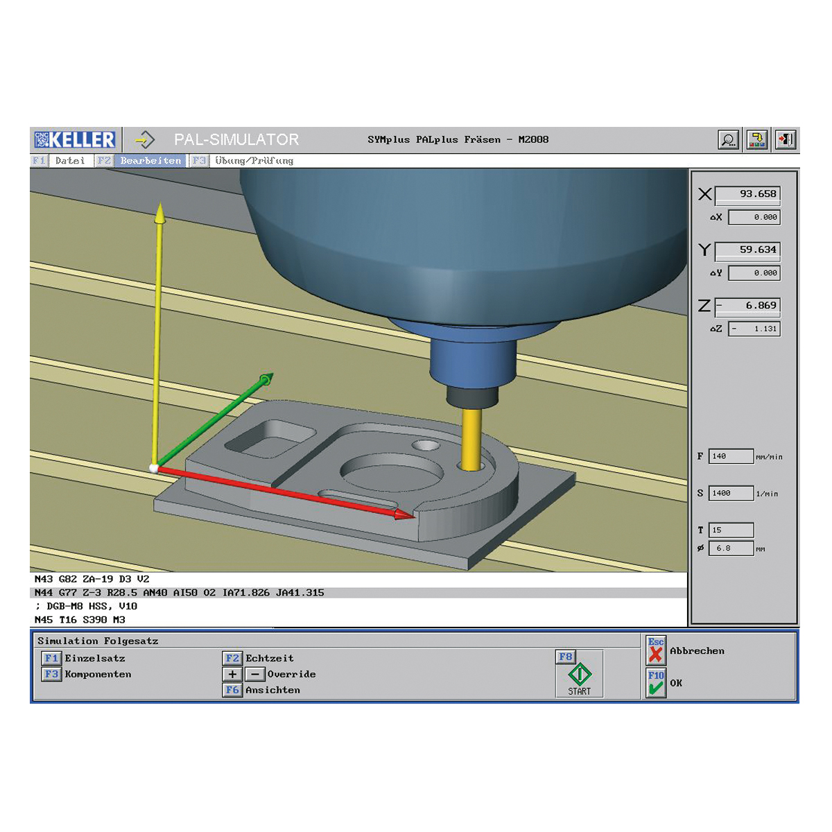 In the simulator - with all new commands and cycles that have been relevant for testing since 2009 - all NC blocks can be programmed in a "guided mode". Input dialogues, extensive help pictures and a meaningful simulation with magnifying glass, single block etc., also in 3D, thus enable targeted learning.