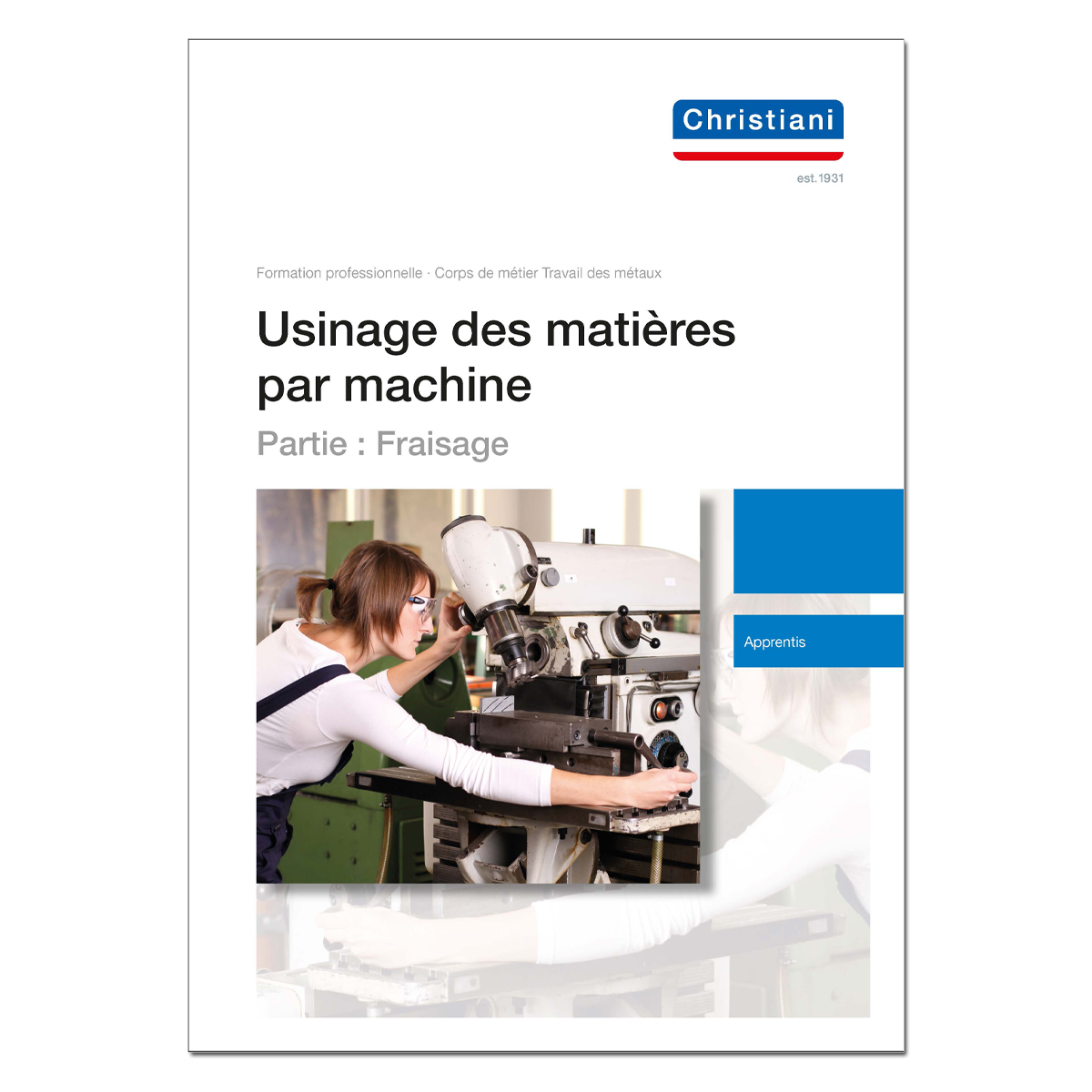 The training workbook "Machine - based material processing - Part: Milling" deals with the metalremoving process of milling. It provides a detailed description of the various milling methods, e.g. surface milling using either a face milling cutter, a peripheral milling cutter or an end milling cutter, and longitudinal profile milling. It also presents the various types of milling machines and their functions, provides instruction in professional machine operation and the review and setting of the production parameters, and describes the necessary tools as well as the fitting and adjustment of the tools and workpieces.