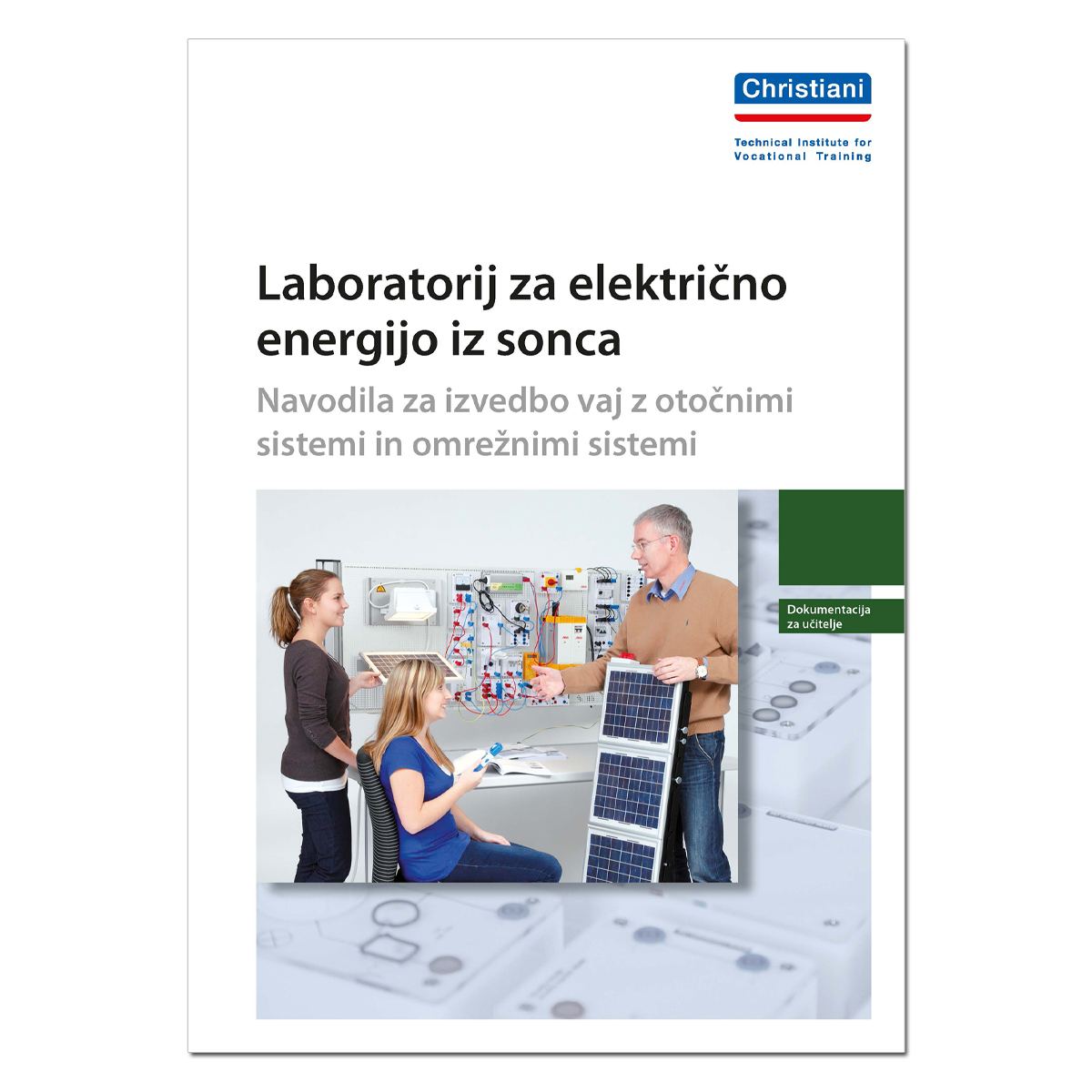 The experiment manuals for the solar power laboratory are the result of various further-education concepts. Besides basic information on climate protection and renewable energy given in separate sections, the manuals provide an introduction to off-grid and on-grid technologies. The teacher documents are in colour. These documents include the solutions for the exercises and are available in German and English. The students' copy is printed in black and white and does not include the section with solutions.