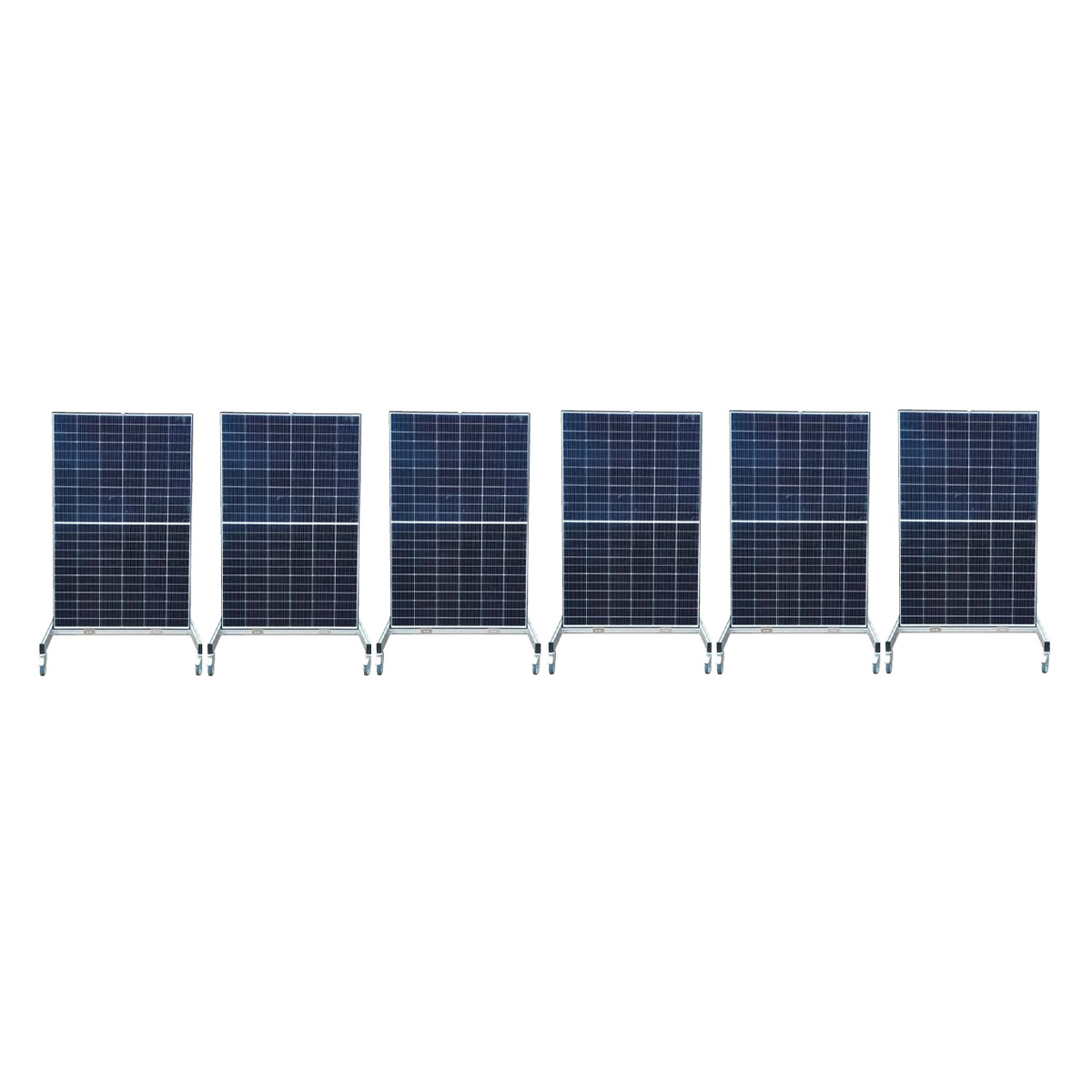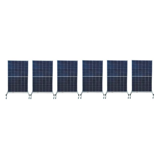 • 6 bifacial PV modules (i.e. the modules process radiation from both sides), each approx. 420 W