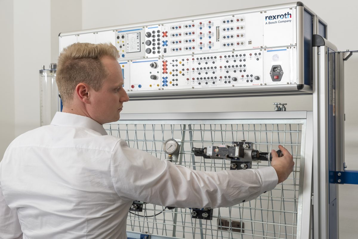Bosch Rexroth’s modular training systems are precisely tailored to the qualification levels required by industrial and educational institutions. Each training system consists of a workstation, the components in the equipment sets, and the exercise books. These systems impart practical knowledge in the field of hydraulics for both beginners and advanced learners. The modular training systems developed by Bosch Rexroth specialists provide beginners and advanced learners with tangible technical know-how and solution expertise. They offer in-depth, practical knowledge that can be experienced using industrial series components. Internationally standardised programming languages and open interfaces are used.